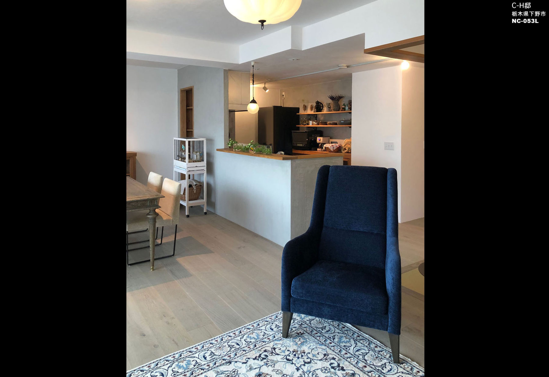 納入後の感想:座り心地に感動されていて、お嬢様と取り合いになるとか・・・・。ブルーの差し色が空間のアクセントになり椅子のシルエットをさらに際立たせています。