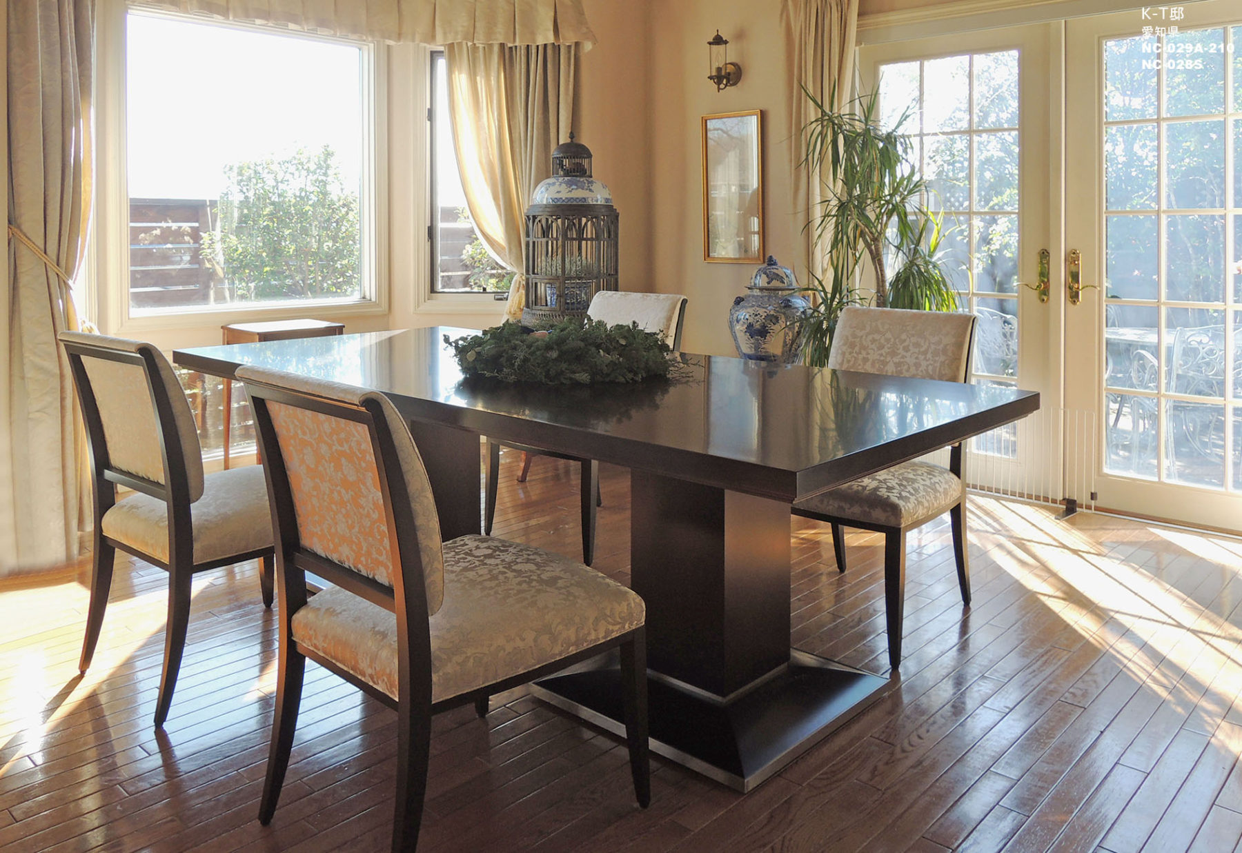 当社製品の採用理由:ダイニングは食事、家族の集いなど、毎日の生活に欠かせないインテリアです。お身体になじみが良い事が第一条件。また、シノワズリの世界観も静かに受け入れるどっしりとした佇まいが空間にぴったりでした。