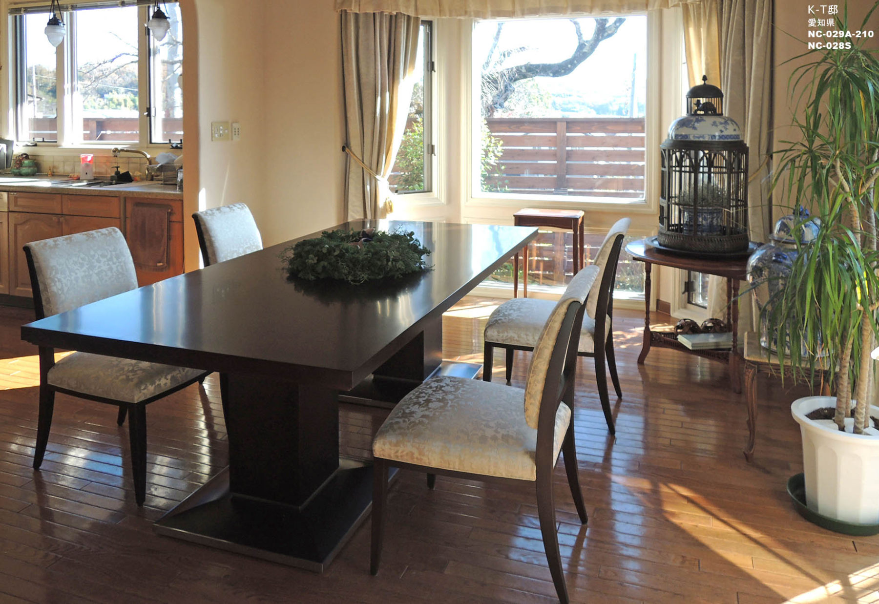 納入後の感想:センスの良い奥様のお見立てのMANASの張地が空間を引き立てます。テーブルウェアや季節のお花などテイストの変化も楽しめ、大変ご満足頂いています。
