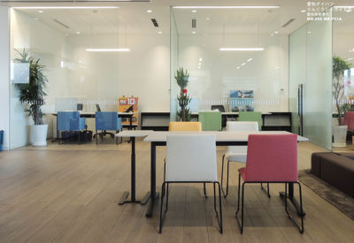 当社製品の採用理由:お一人様席、ファミリーゾーン、商談ゾーン等目的に合わせてくつろげるようなデザイン性のある家具を選びました。