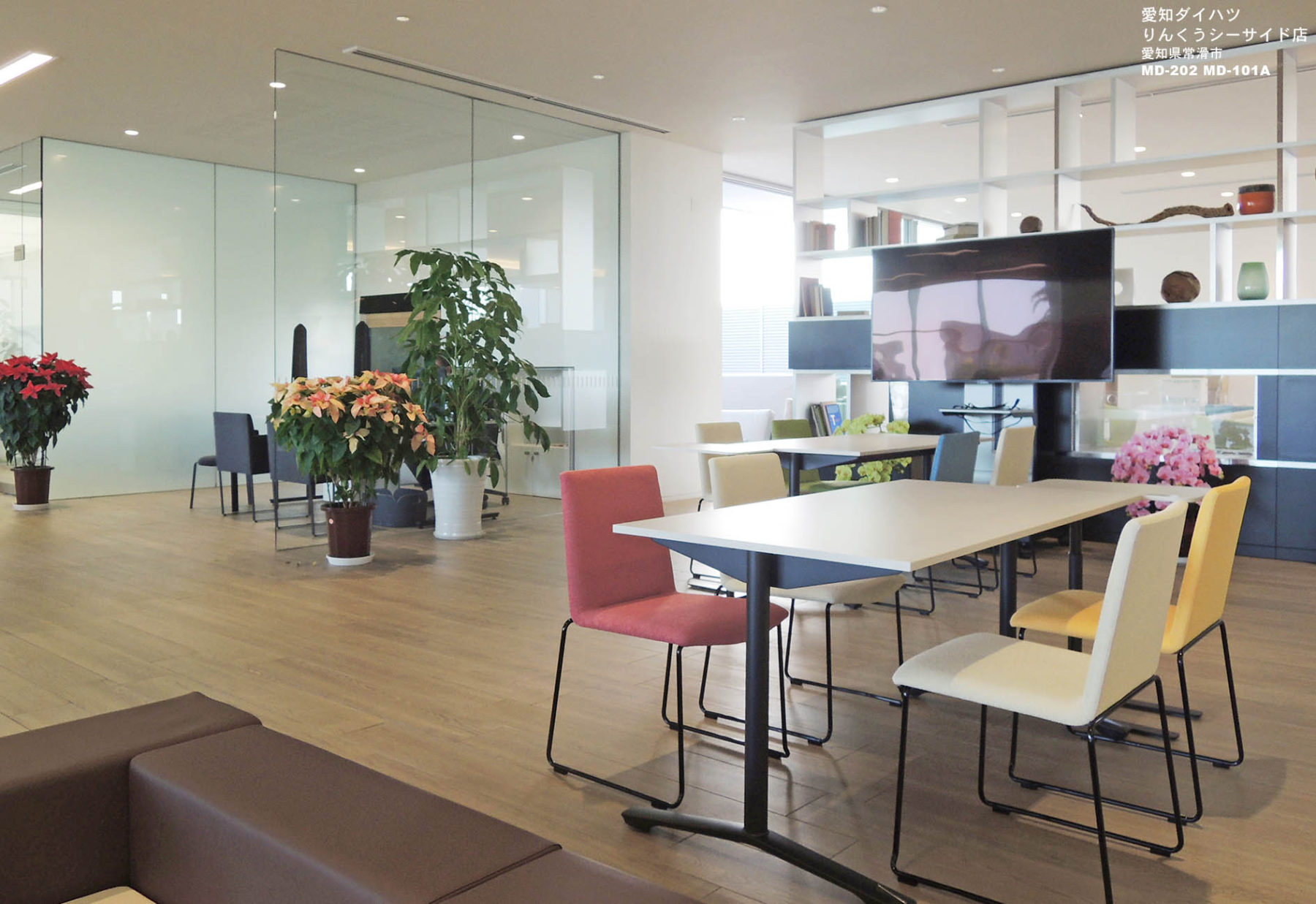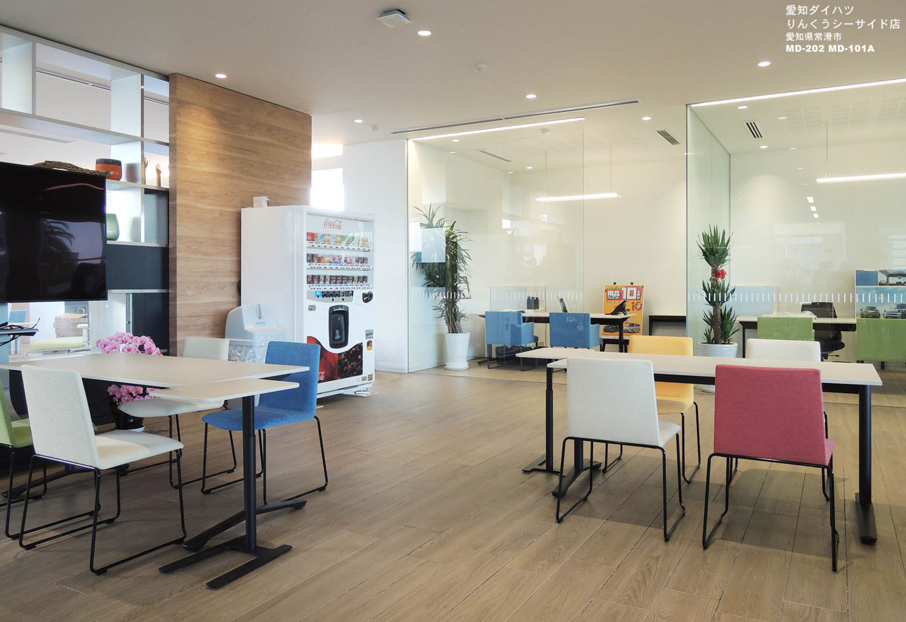 当社製品の採用理由:お一人様席、ファミリーゾーン、商談ゾーン等目的に合わせてくつろげるようなデザイン性のある家具を選びました。