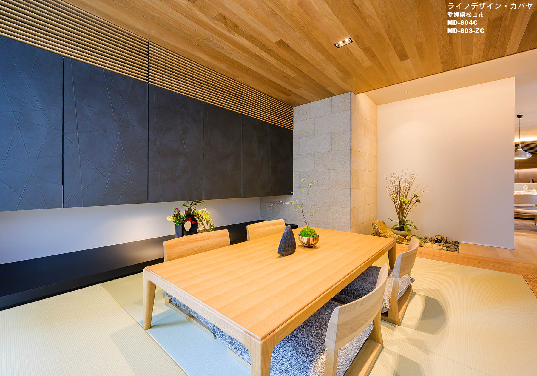 当社製品の採用理由:リビング、ダイニング、和室のつながりを違和感なくコーディネートしたい。コンセプトであるモダンで上品さが出せるもの。