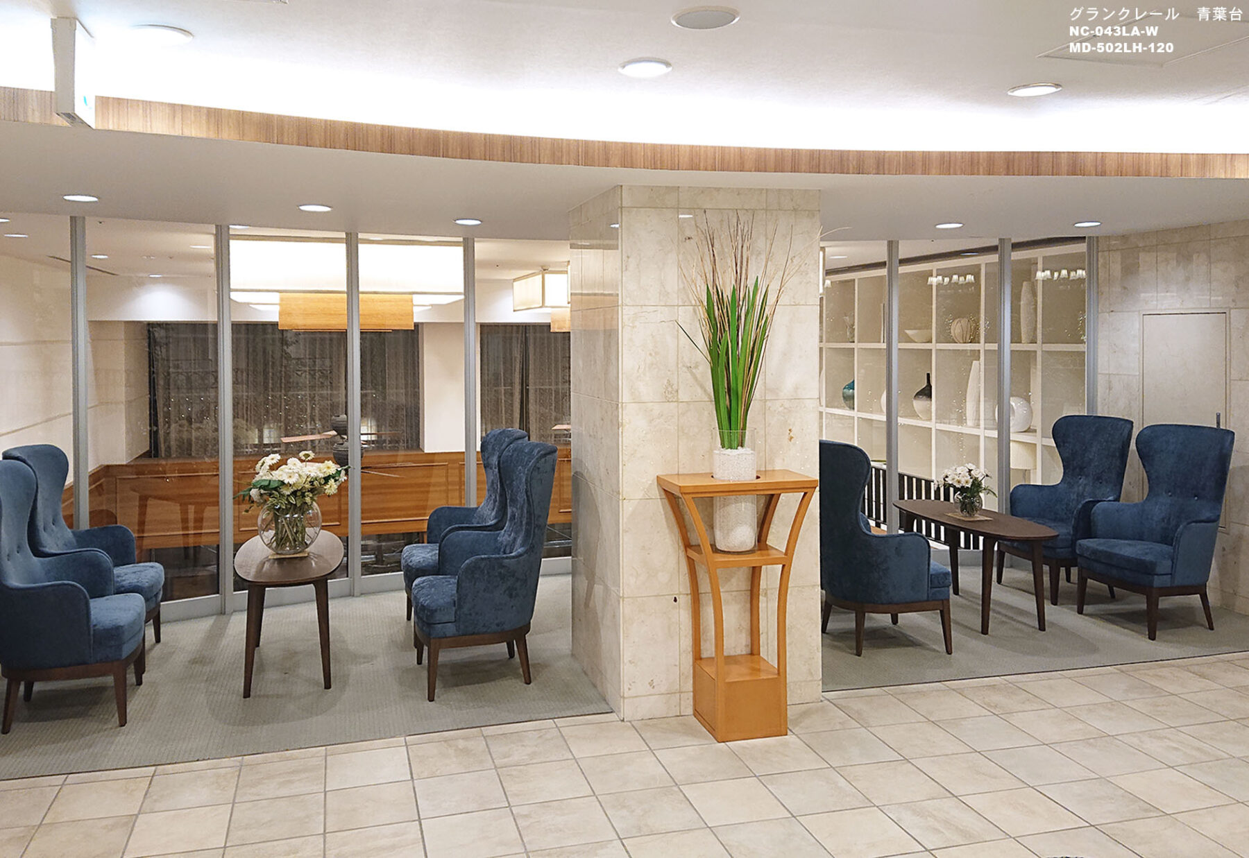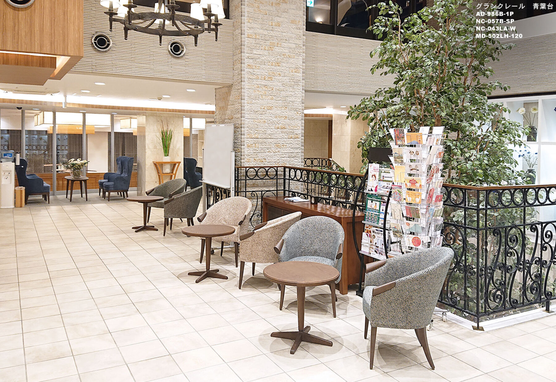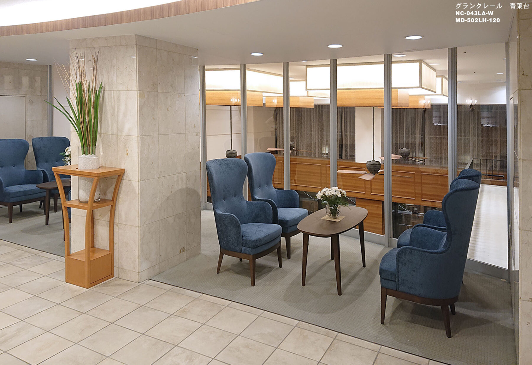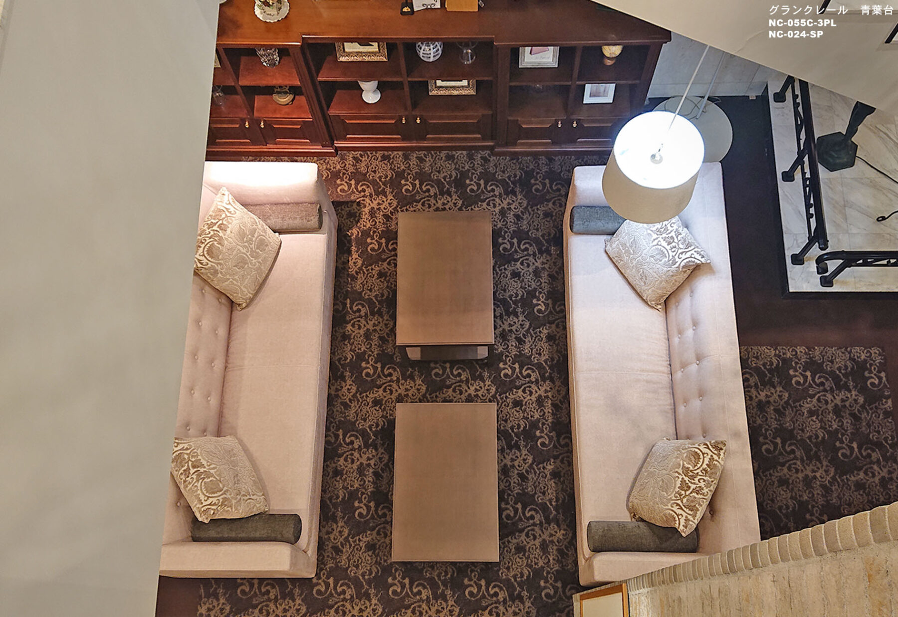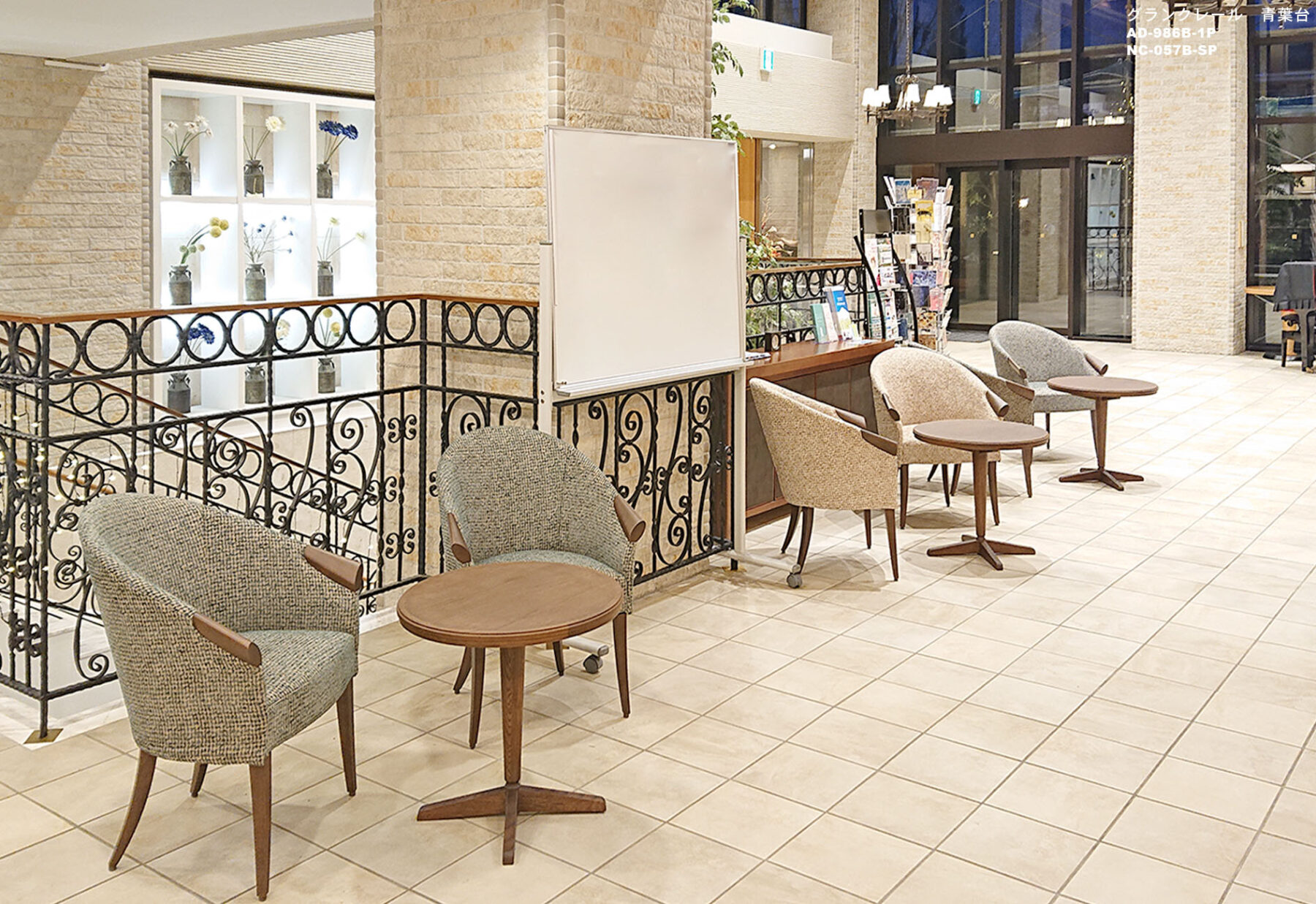 今回は2階エントランスロビーラウンジ、1階吹抜けのあるホールと2室の応接室内をリニューアルしました。