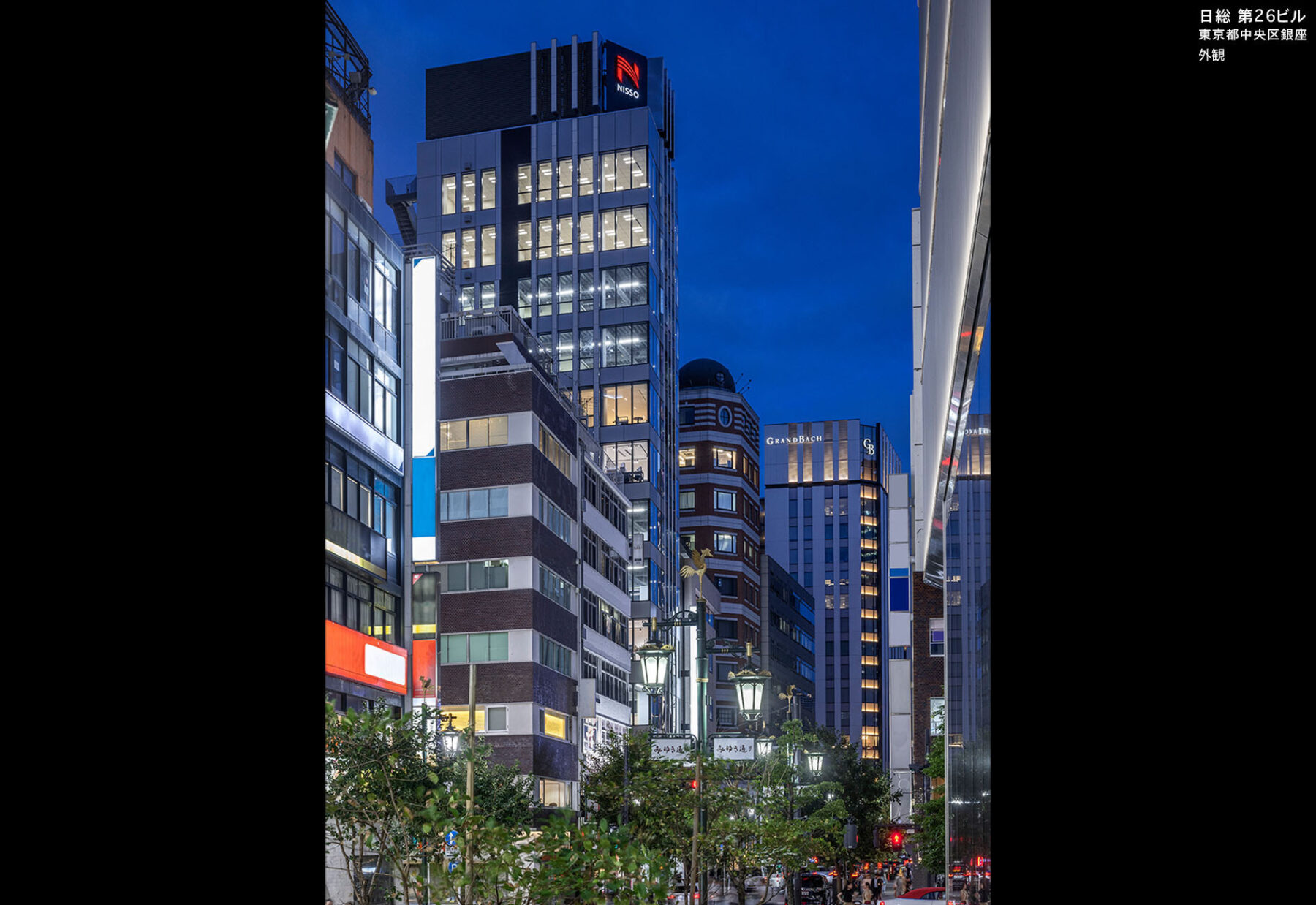明治天皇の行幸にその名を由来する「みゆき(御幸)通り」沿いの、銀座の象徴といえるロケーション。銀座中央通りや、みゆき通りの各交差点から望める地上約53mのタワーフォルムが、シンボリックな存在感を放ちます。