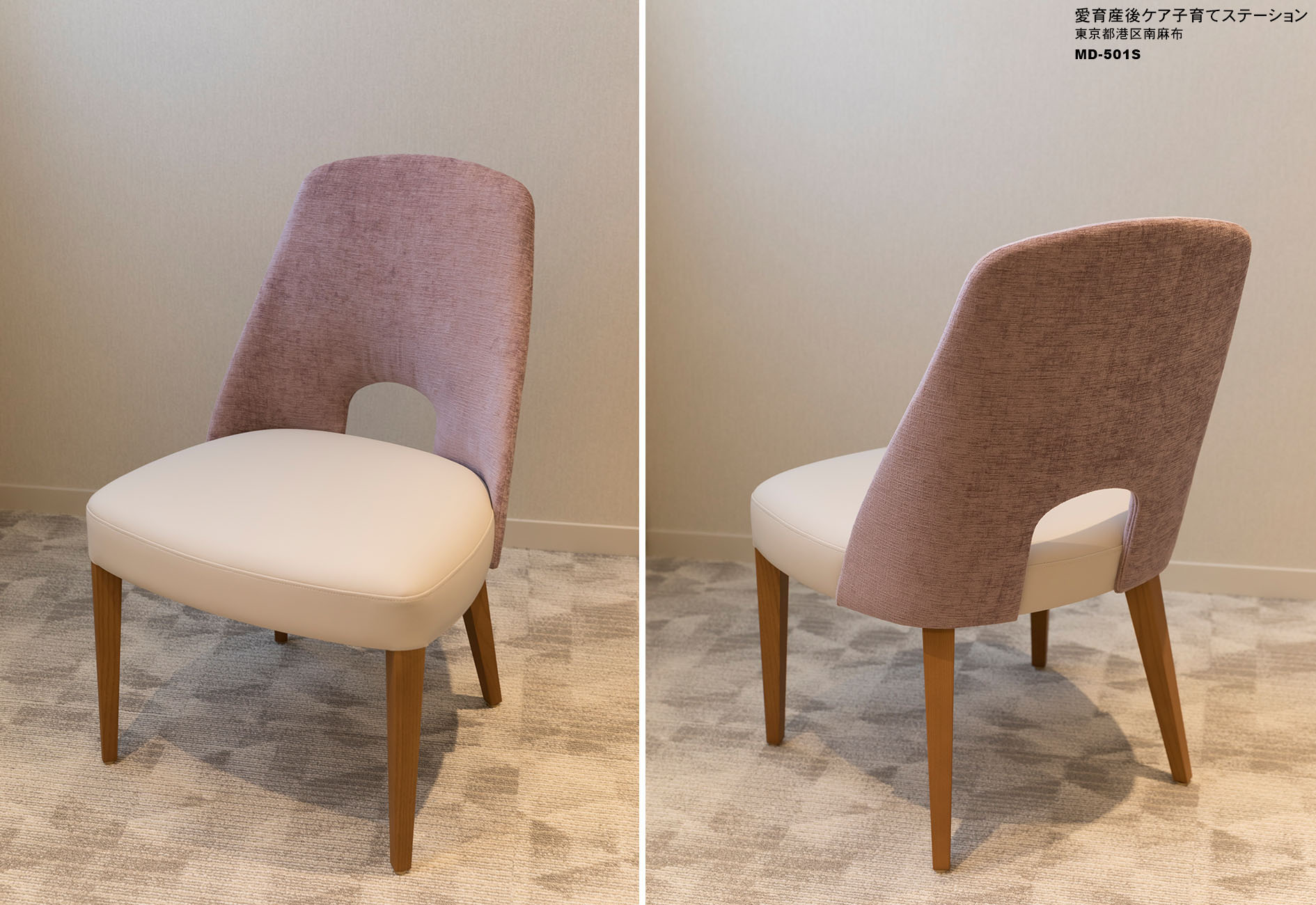 当社製品の採用理由:空間のイメージに調和し、上品に彩りを添えてくれる存在であったという点や、細やかにサイズや仕様を特注対応して下さった点が採用に至った理由であった。施設の仕様に応じて、半ばオーダー仕様で作り上げてくださったのは大変ありがたかった。