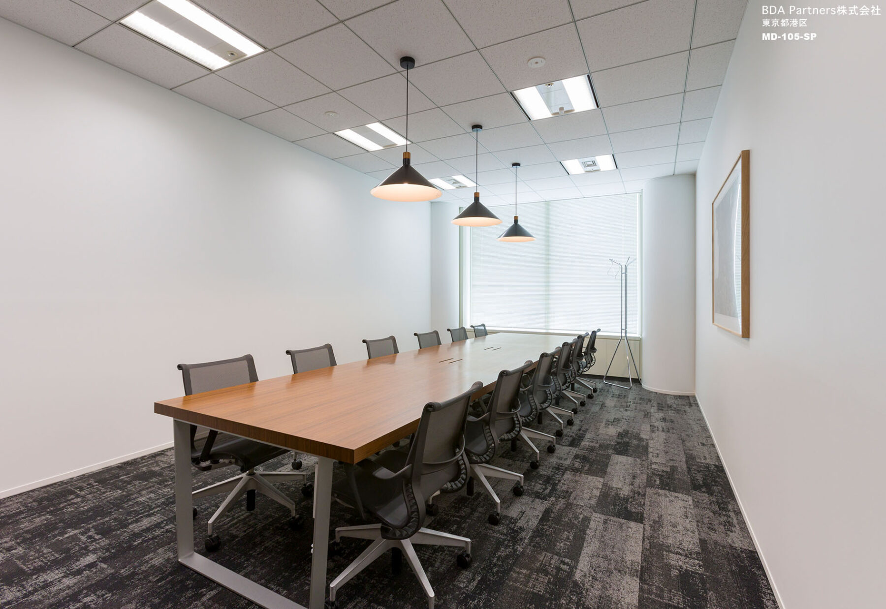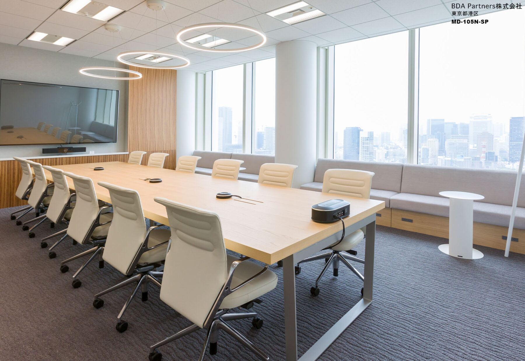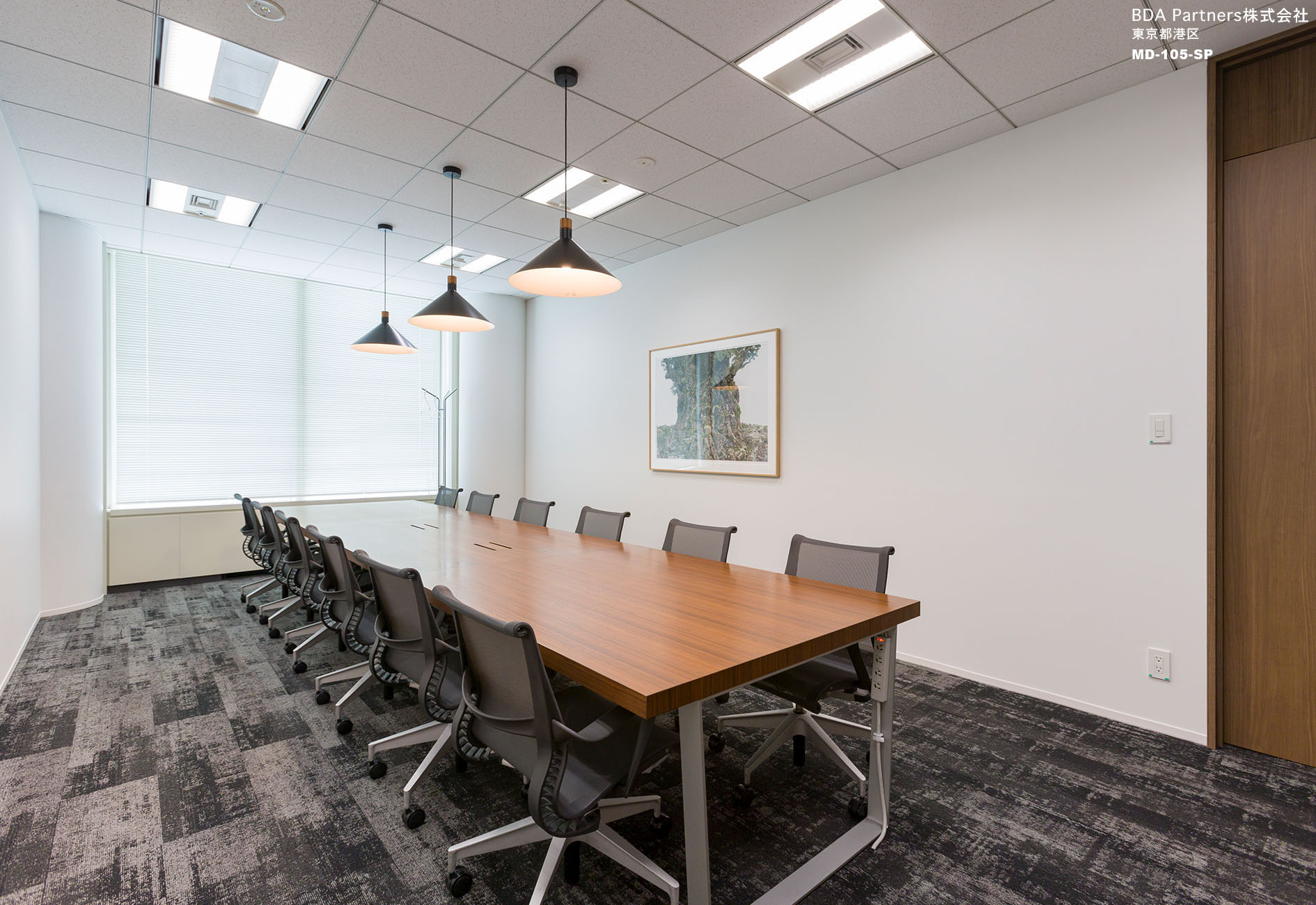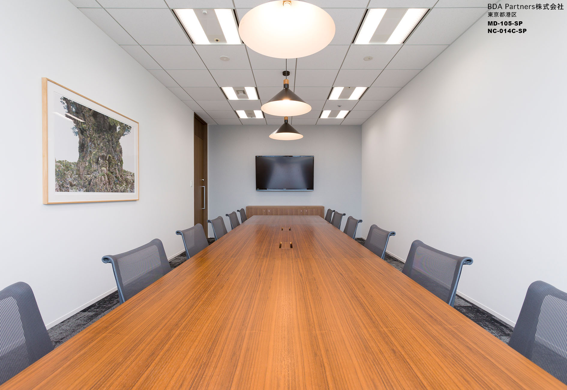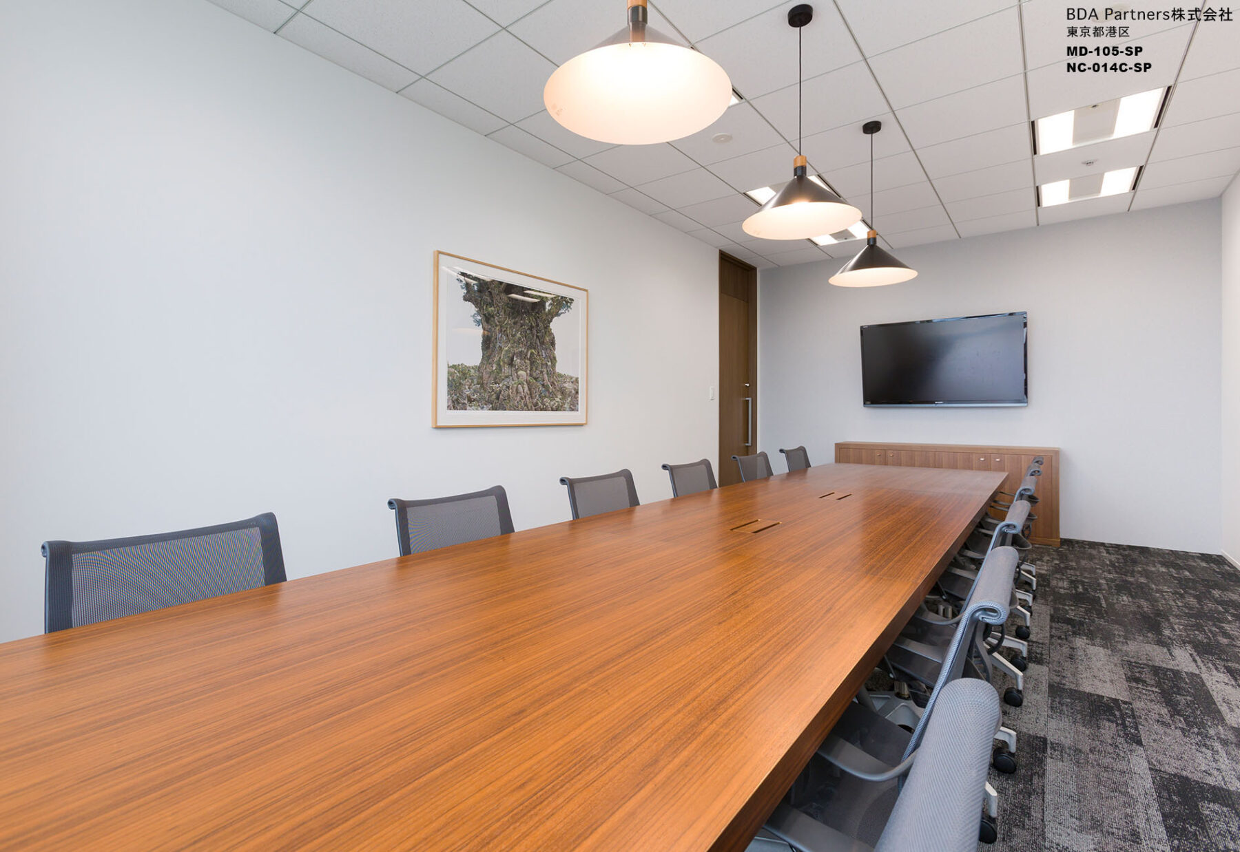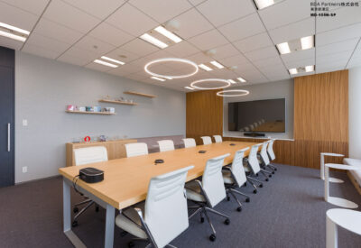 日本での活動をより拡大していく為の強固な基盤となる場所として「BASE CAMP OFFICE」をオフィスのコンセプトに設定。「世界の山」の名前が付いた応接を兼ねた会議室には、それぞれ木目の色を変えたテーブルを配置。来訪者がオフィスのコンセプトを体感できるようになっている。