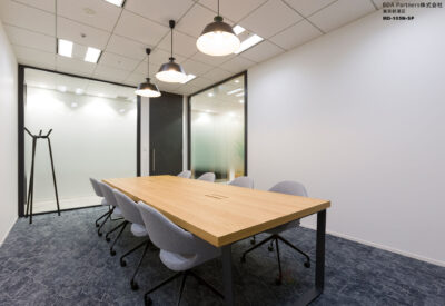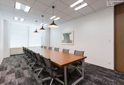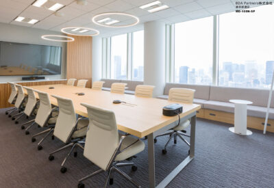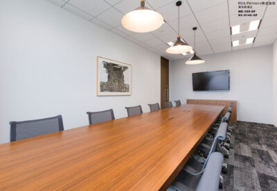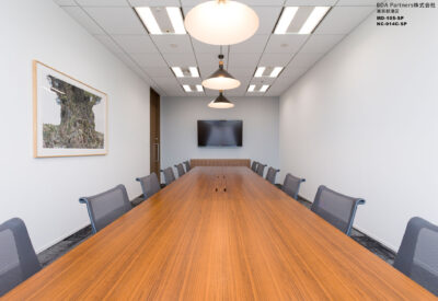 イメージとサイズが異なる複数の応接を兼ねた会議室に対し、応接室らしい重厚感やナチュラルなイメージなど様々な天板のバリエーションを持つA-mode Heritageダイニングテーブルを一括で採用。異なるイメージの会議室でありながら同一のテーブルを採用した為、全体の統一感も保つことができている。