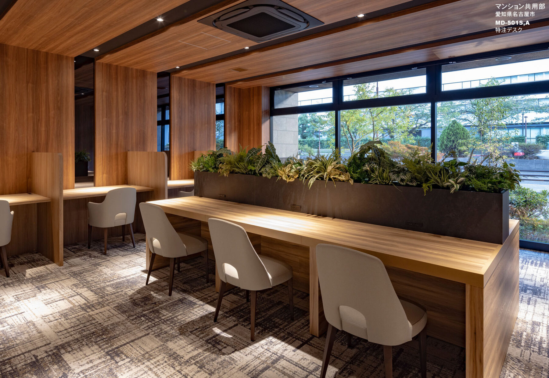 納入後の感想:本物件では張地を特注で対応頂き、より柔軟にデザインの幅を広げられたおかげで各々の空間に調和し、デザインコンセプトにも適した演出をすることが出来ました。
