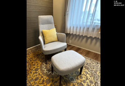 当社製品採用理由:お客様がアームレスのソファをご希望でした。このことと今回のコンセプトに合致する製品を考慮して御社をおすすめし、ショールームを訪問しました。そこでサイズ感、生地や木部の色や質感をご体感いただき、ソファ(背面の高さを少し高くカスタマイズ)、リビングテーブル、パーソナルチェアのご納品となりました。