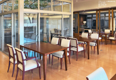 事業所の顔となる1階食堂は、オーナーのこだわりで採光が多く取り入れることができ、ゆったりと落ち着きのある空間を創造しております。