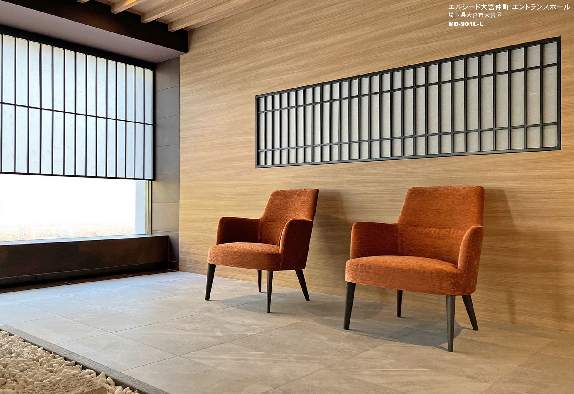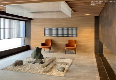 当社製品の採用理由:シンプルなデザインで和モダンな空間に合い、エントランスという場所柄、フォーマルで静かな中にも落ち着いた空間を演出。
