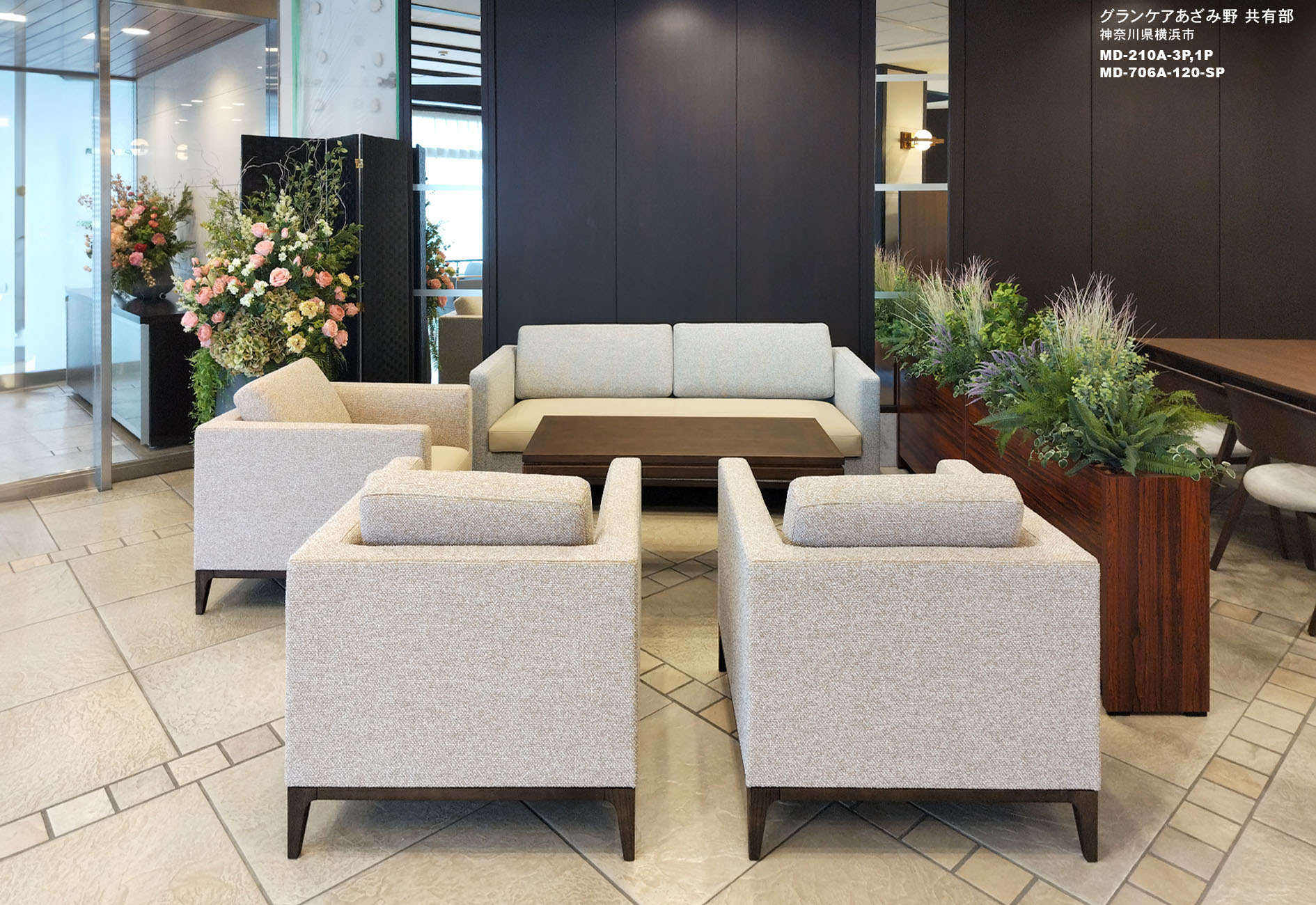 東急不動産ホールディングスグループの高齢者住宅。 2004年の開設以来、シリーズの介護住宅として最も歴史のある「グランケアあざみ野」今回はエントランスホール、打合せエリア、他をリニューアルしました。