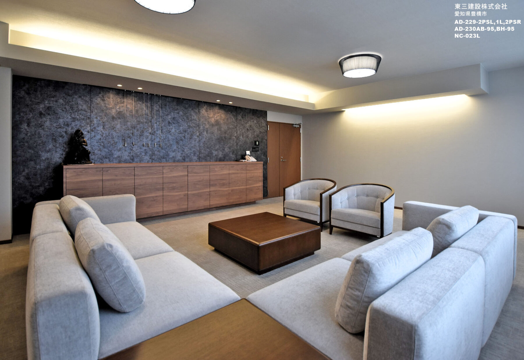 『昭和の頃の格式あるホテルのロビー』そんな優雅さを感じながら、豪華さよりも実用性も備えた応接室ご希望されました。