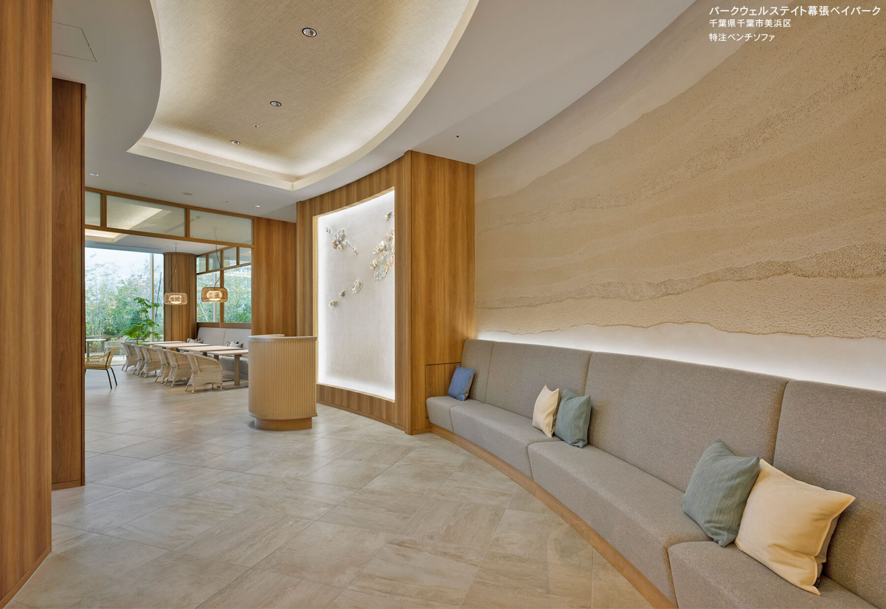 当社製品の採用理由:意匠性が高く機能性にも優れ、特注対応なども柔軟に対応いただけること。硬さの調整等細やかな配慮をいただきました。モックアップのご協力や現調などもとても丁寧にご対応いただける安心感。
