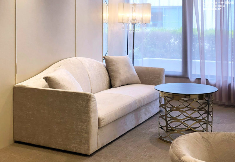 当社製品の採用理由:お客様にリラックスして頂く為に、丸みのあるフォルム、アシンメトリーなデザインながらも絶妙なバランス感、そして家具としての適度なボリューム感があるという点で、キドニーソファを選定いたしました。