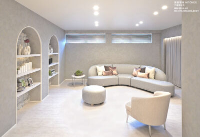 グレイと白の静謐な色調をベースに、心地良さと清潔感を感じられるインテリアを視覚的、触感的な観点を大切に空間作りを致しました。