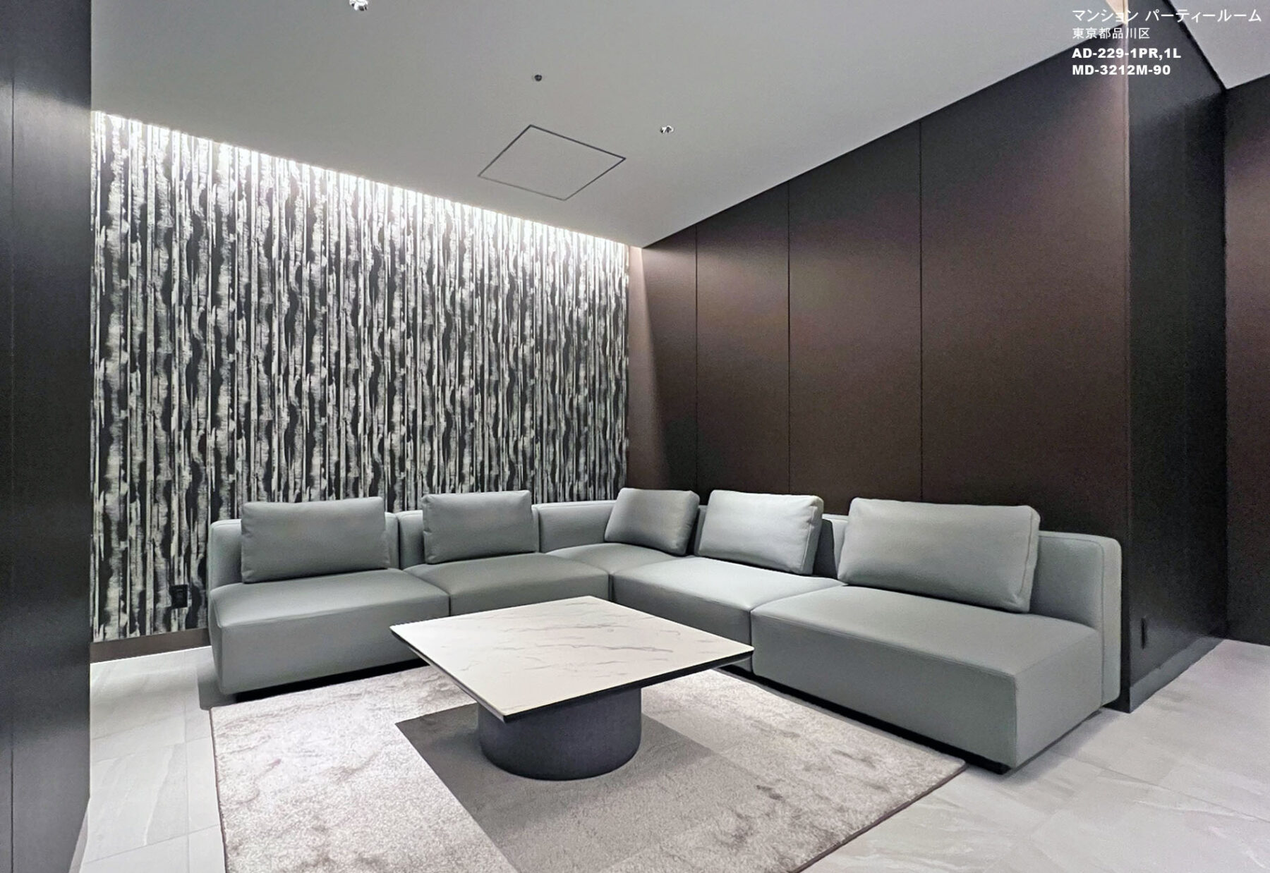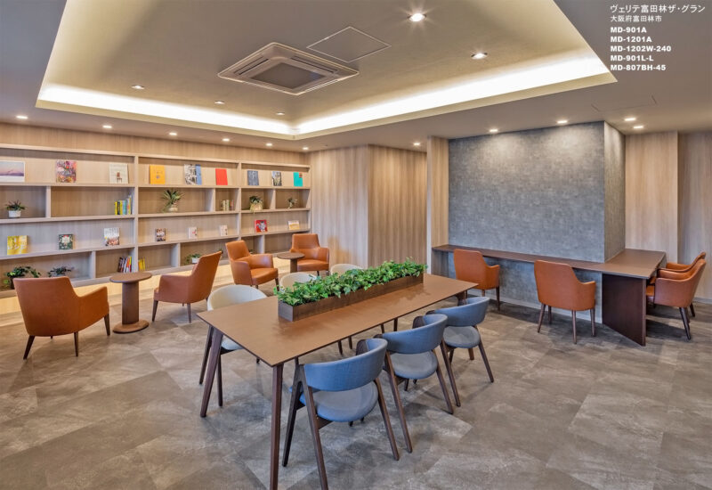 ・利用者がリラックスできるようボリュームのあるL型ソファと石目調がアクセントのソファテーブルをセレクトしました。