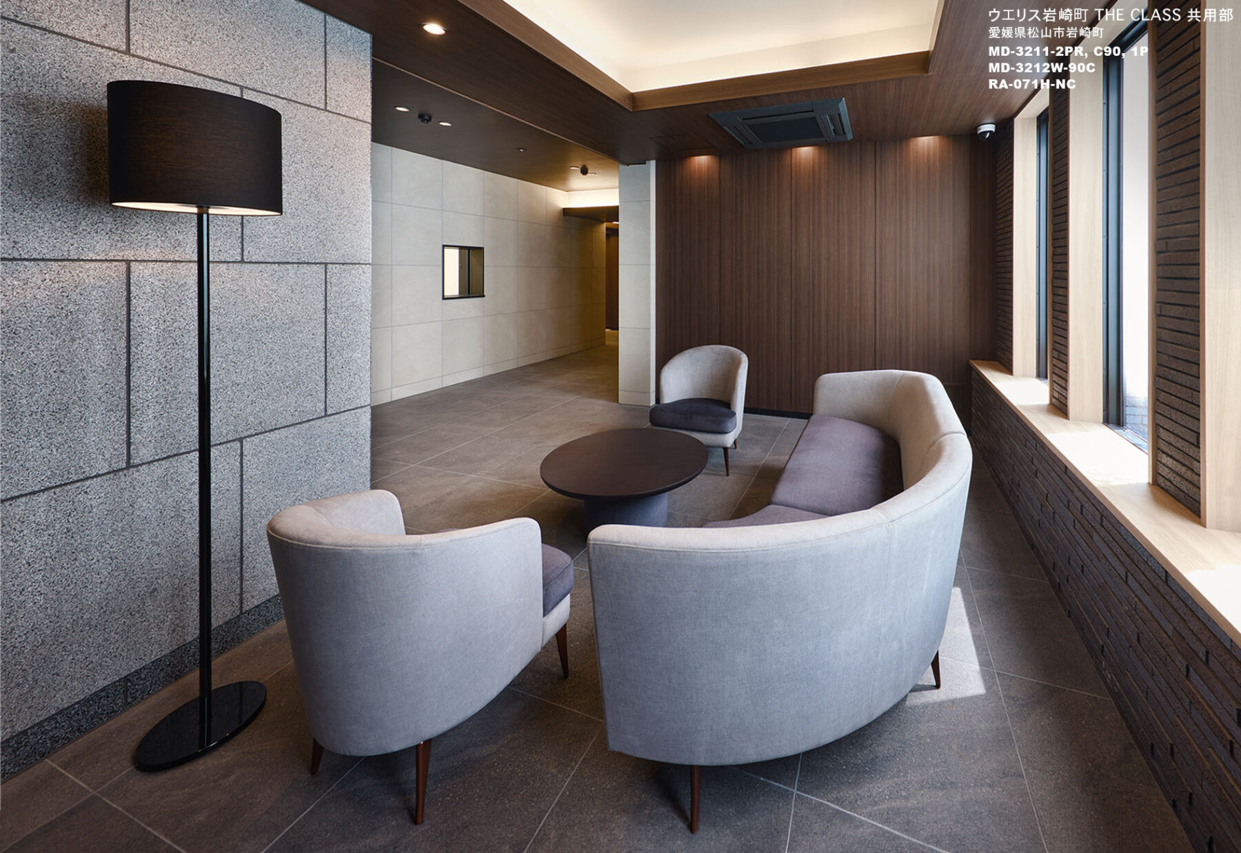 温暖で暮らしやすく美しい街、松山。なかでも、本物件が位置する岩崎町には 落ち着いた邸宅感があります。街に調和する景観づくり、人と環境に優しい ものづくりとともに、現代の住空間に求められる意匠を追求し、岩崎町にふさわしい優美な邸宅の創出をめざしました。