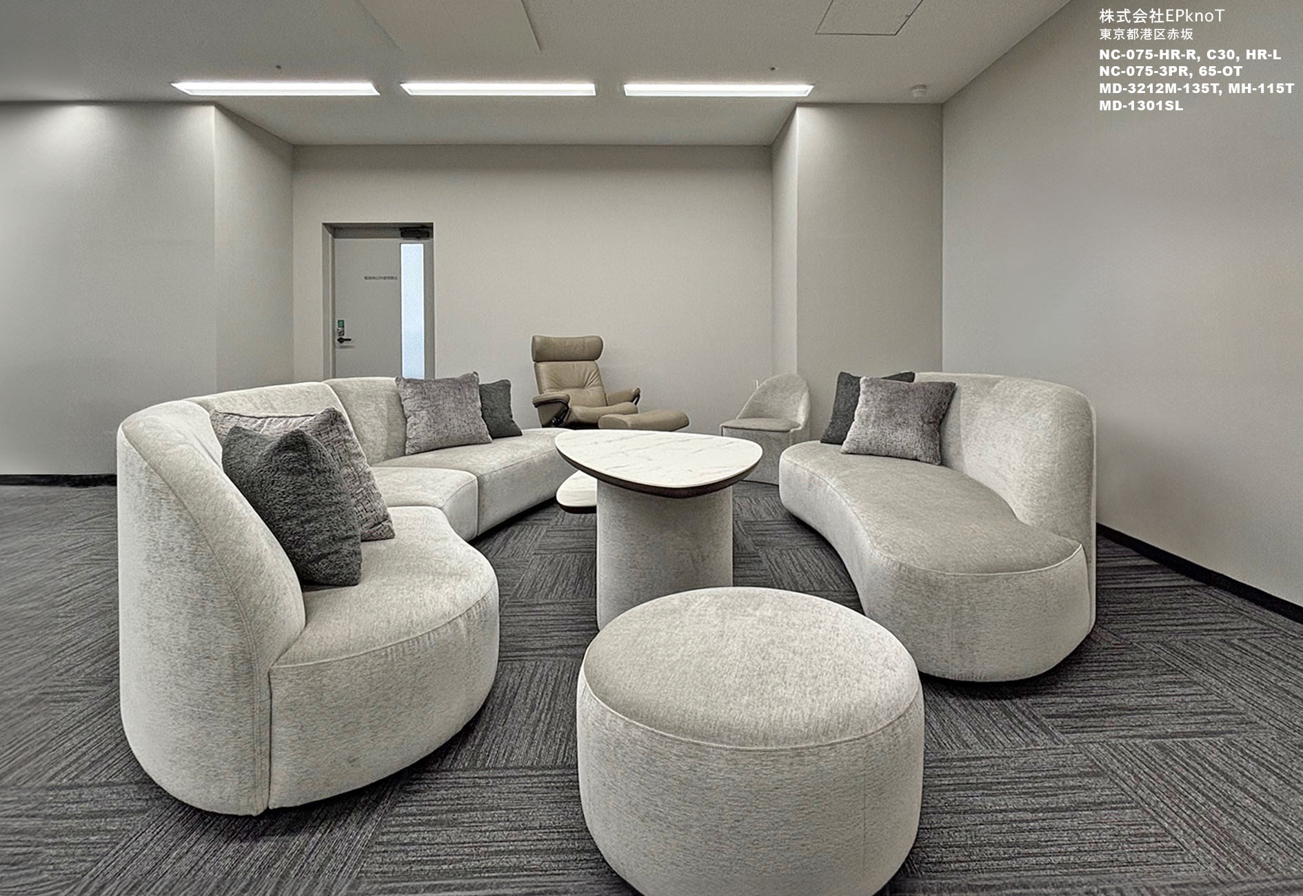 応接室のような堅苦しい雰囲気ではなく、来客や社員の方が自然体で会話できるような、カジュアルでリラックス感のある空間を目指しました。