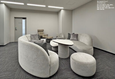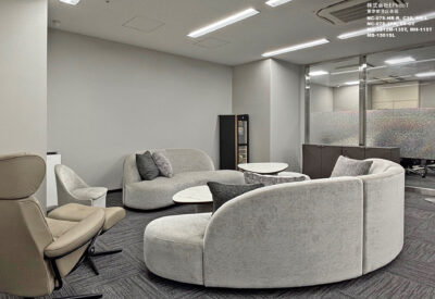 応接室のような堅苦しい雰囲気ではなく、来客や社員の方が自然体で会話できるような、カジュアルでリラックス感のある空間を目指しました。