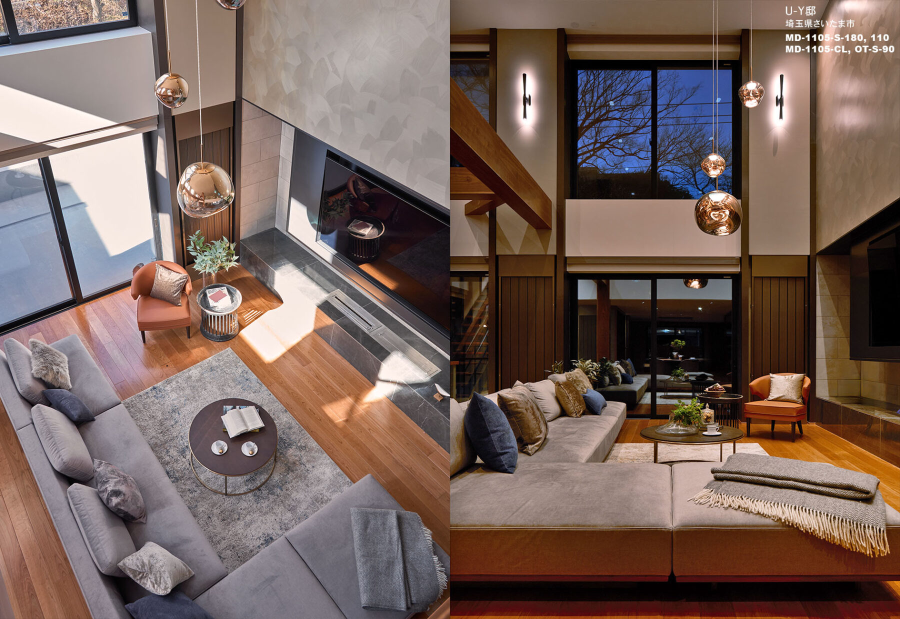 北側に見える神社の借景を取込み、家族が一番集う夜を楽しむ事を重視してデザインしています。