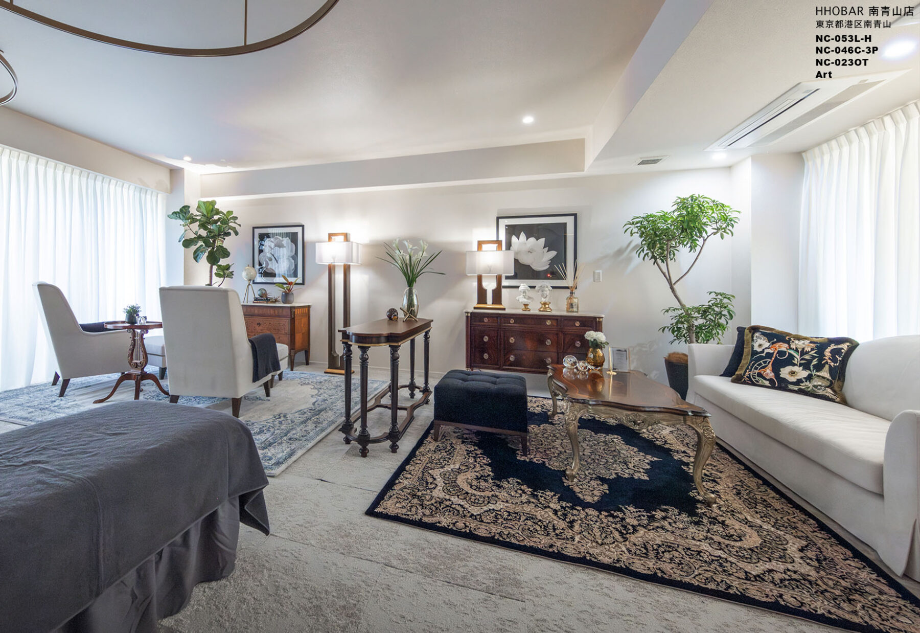 納入後の感想:イメージ通りの空間に仕上がり、上質なサロン空間としての居心地と品格がより高まったと感じています。オーナー様にも大変ご満足いただいております。