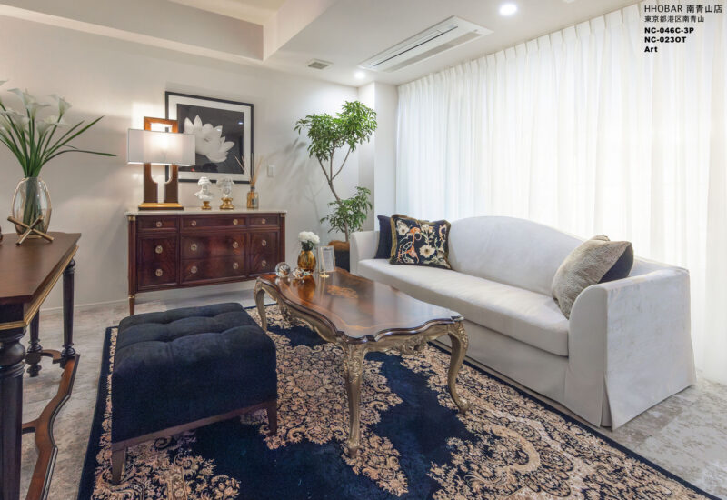オーナー様のお好みのクラシック家具を活かしつつ、空間が重厚になりすぎないようモダンな要素を取り入れた空間構成としました。