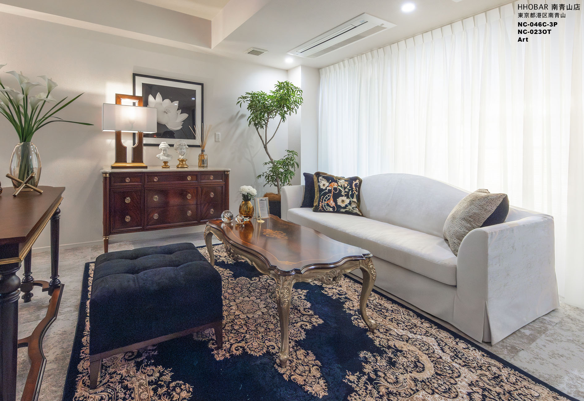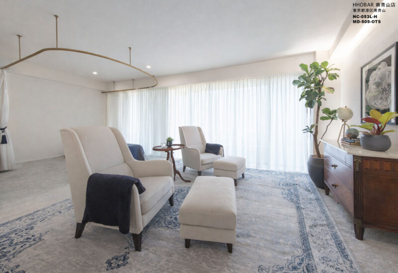 当社製品の採用理由:ソファはすっきりとしたフォルムとエレガントな曲線がクラシックモダンに自然と馴染む点を評価しました。アートは他のクラシック家具をモダンなイメージへ導く存在としてご提案し、いずれもご提案後すぐに決定しました。